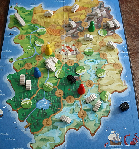 Die Spieler sind ständig involviert: Man spart auf ein tolles Gebäude, sorgt sich darum, dass die Konkurrenz einem zuvorkommt, hofft, dass sich mal jemand verantwortlich fühlt, dem Führenden eins draufzugeben, und hängt gleichzeitig seit zwei Runden ganz doof an einer Barriere fest, weil man einfach nicht dazu kommt, endlich mal das Überquerungsgebäude zu bauen.